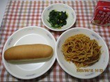 今日の献立は、「小型コッペパン・牛乳・スパゲティのミートソース煮・ほうれん草のソテー」でした。