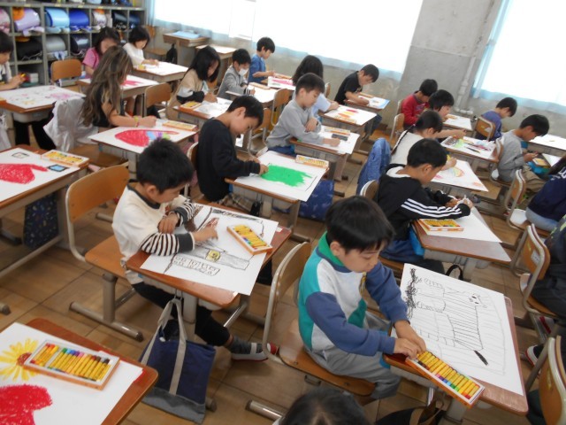 図画工作科「どんどんかくのはたのしいな」の学習で、