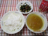 今日の献立は、「麦ごはん・牛乳・チキンカレー・ひじきのソテー」でした。