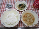 今日の献立は、「ごはん・牛乳・高野豆腐のそぼろ煮・ほうれん草と切干大根のごま煮・じゃこ」でした。