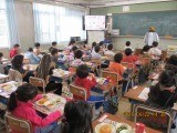 大豆と鶏肉のトマト煮は、具材にしみ込んだトマトの甘味が楽しめる献立でした。「パンに合う!おいしい!」「トマト大好きだから嬉しい!」と言って、もりもりと食べていました。