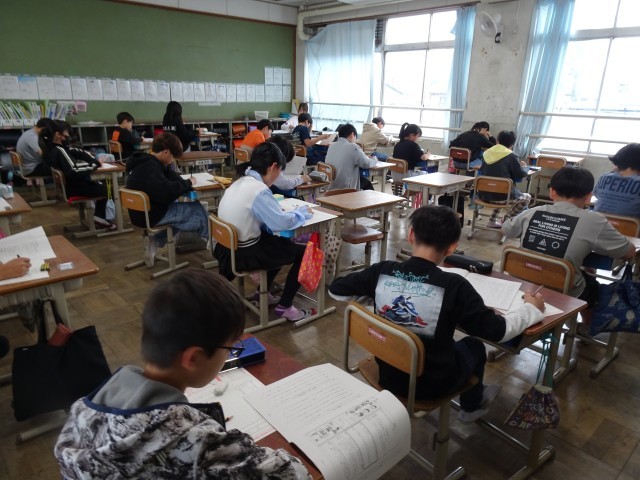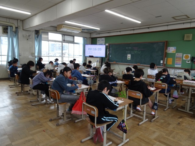 「全国学力・学習状況調査」を実施、6年生のみんなが、国語と算数の2教科の全国学力テストを受験しました。みんな、真剣です。