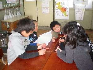 算数科で「はしたの大きさのべつの表し方を考えよう」を学習しています。数直線から等しい分数を探したり,同分母の足し算や引き算を学習したりしました。移行措置の学習も加わり,少し難しい学習もありました。特に,帯分数の引き算は難しかったと思います。「2と7分の4引く7分の6」という問題では,2と7分の4の整数部分の2をすべて仮分数に戻すのではなく,2の中の1だけをかりて,1と7分の11に直して計算をしていきます。1だけをかりてくるということがイメージしにくく,問題を解くことが難しかったと思います。しかし,数直線をかいたり,ピザの図をかいたりして,具体的にイメージできるように問題を解いていくことができていました。分数は問題数をこなしていくことが大切だと思います。空いた時間などには,練習問題をして,確実に力がつくように取り組んでいきたいと思います。