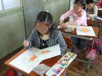 12日(火)の図画工作科の学習で自分の顔を描きました。今回は鏡を使って,自分の顔をじっくりとみながら描きました。どんな感じかなと思って見ていたのですが,みんなとても真剣に,自分の顔を見ながら描いていました。また,肌色も絵の具のものを使うのではなく,自分なりに絵の具を混ぜて作っており,素敵だなと思いました。教室にみんなが描いた顔の絵が掲示してあります。