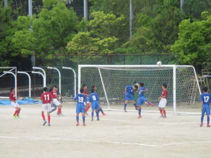 サッカー部は4月30日に大枝中学校グラウンドで嵯峨中学校と対戦しました。前半に1点を先制されたものの,その後は押し気味に試合を展開しました。しかし,何度か得点のチャンスがあったものの攻めきれず,後半終了間際に追加点を許し,残念ながら勝利はなりませんでした。この悔しさを,夏季大会までの練習に活かし,夏こそ「凌風旋風」を巻き起こしてほしいと思います。サッカー部の今後の活躍に期待しています。