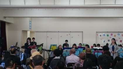 4月21日,希望の家児童館で行われた東九条夏祭りで,吹奏楽部がオープニングを担当させてもらいました。老若男女多くの方々に楽しんでいただけるようなプログラムで演奏し,喜んでいただきました。これからも地域に愛される吹奏楽部として,頑張っていきます。