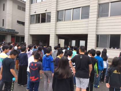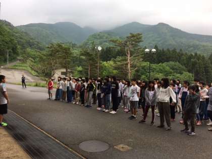 4日目の朝を迎えました。天気は曇りです。音楽に合わせて体操をし,体も頭もスッキリさせました。