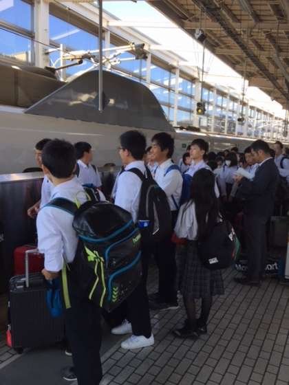 9年生一行は結団式を終え, 新幹線で一路小倉駅へ向かって出発しました。