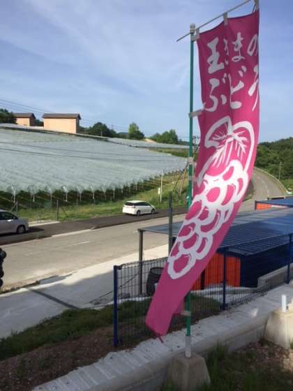 ぶどう園に囲まれ,のどかな風景をバックに歓迎のバーベキューに入ります。豪華な食材に今か今かと待ち遠しい一行です。