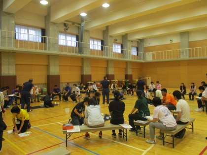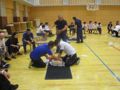 6月6日(水)の放課後の時間を使って,教職員の救命救急講習会を行いました。南消防署の職員の方に講師として来校いただき,養護教諭の先生方にもお手伝いいただき,応急手当に関する正しい知識と技術を身に付ける目的で,心肺蘇生法の実技を中心に講習会を実施しました。命に関わる大切な講習会として,緊張感をもちながら実技を行い,教職員で救命救急の基本を学びました。