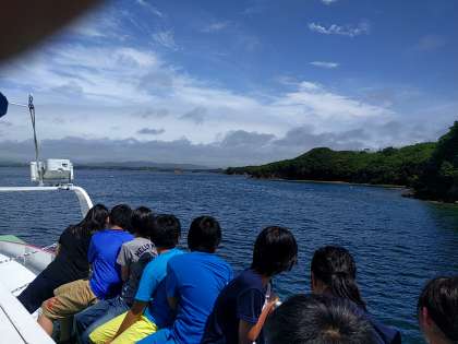 みさきの家をあとにして,船で賢島に向かっています。快晴で,さわやかな風を受けながらクルージング。ホッとするひと時です。