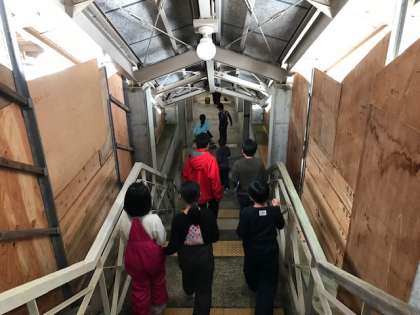 午前中は館内ラリーをしました。グループで,決められたマークを探し,問題を解きながら館内をまわりました。目的は問題を解くことではなく,グループのみんなで協力することです。