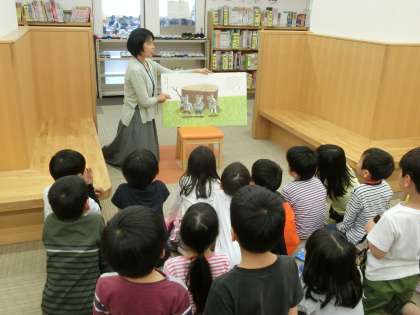 学校司書の先生に,図書コーナーの使い方を教えてもらいました。本には住所があるということ,借りるときの約束等を確認しました。最後には楽しい絵本の読み聞かせもあり,子どもたちは図書コーナーのことが大好きになりました。