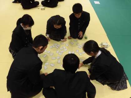 1月17日(金)の4限に7年生が多目的ホールで百人一首大会を行いました。