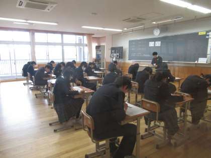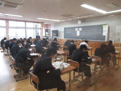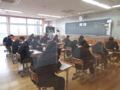 1月28日(火)と29日(水),7,8年生は今年度最後の学習確認プログラムを行います。今日は1限から国語,社会,数学の3教科に取り組みました。明日は理科,英語の2教科です。