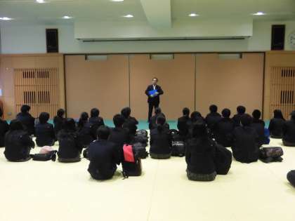 京阪神市立高校入試が終わり,2月17日(月)から公立高校前期選抜が始まります。本日6限に9年生の前期選抜受検者は多目的ホールで事前指導を行い,学園長先生の激励の言葉の後,進路主事の先生からの諸注意,最後は学校ごとのグループに分かれて学年の先生とともに最終チェックをしました。9年生は緊張した面持ちにも,「がんばるぞ」という気迫のこもった表情で,終始集中した様子でした。