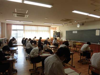 10月15日(木)と16日(金)の2日間,9年生は学習確認プログラムを実施します。本日1日目は国語,社会,数学を行います。来週には修学旅行を控えていますが,学園生達は気持ちを引き締めて,各教科の学習確認プログラムに真剣に取り組んでいる様子がうかがえました。明日,2日目は理科と英語に取り組みます。