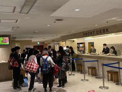 9年生は,宿泊先の「名古屋クラウンホテル」に到着し,この後部屋へ移動した後,食事会場へ移動します。