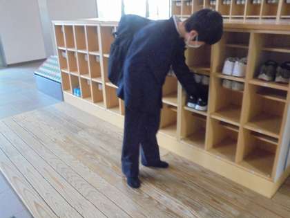 「おはようございます」の声が聞こえてくる朝の時間です。登校してきた学園生は,靴箱に自分の靴のかかとをきちんとそろえて入れています。とてもきれいに並べられている靴箱を見ると,気持ちいい気分になります。