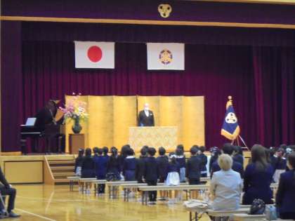 大体育館に入場した後は,いよいよ開式です。初めて凌風学園の校歌を聞き,学園長からの式辞やPTA会長から祝辞をいただきました。1年生のみんなはしっかりとした態度でお話を聞くことができました。