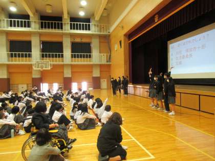 本日第2ステージオリエンテーションを行いました。児童生徒会活動や部活動についての紹介が行われ,「学園生活を楽しいものにしていきたい」「一緒に協力して過ごしていきたい」という第3ステージの先輩方の想いを聴くことができました。第2ステージ学園生は,児童生徒会の一員としての自覚を持ち,凌風学園をよりよくしていこうとする意欲につなげいってほしいと思います。