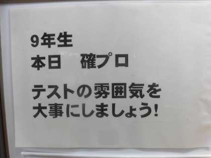また,廊下には「テストの雰囲気を大切にしましょう。」という看板が置かれ,他学年の学園生も9年生のテストの雰囲気を大切にする様子がありました。