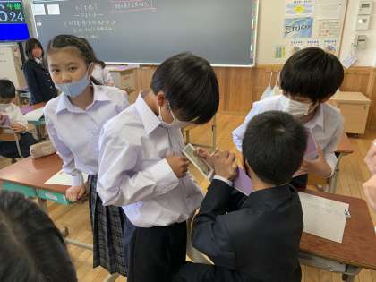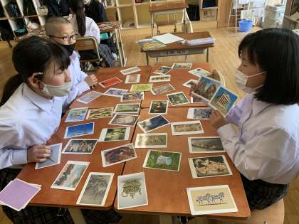 一つの絵をじっくり見て,感じたことや思ったことなどを書き,ペアやグループで交流しました。そうすると,一つの絵でも色々な見方があることに気付くことができました。