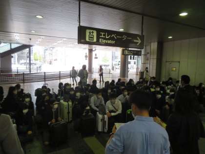 結団式の様子をお知らせします。集合時間の30分前からすでに数人が集まっていました。みんなが楽しみにしていることが伝わってきます。あいにくの曇り空でしたが,集まって来るみんなの顔は天気とは真逆のニコニコ笑顔です。