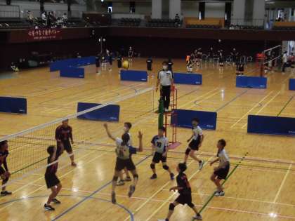 7月24日(日)に男子バレーボール部は、夏季大会の準決勝を京都市体育館にて行いました。対戦校は春季大会優勝校の洛北中学校と対戦しました。