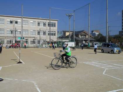 自転車安全教室を行いました。南警察署の方に自転車の安全な乗り方を的確に教えてもらいながら、実際の走行テストを行いました。一生懸命に周りを確認したり、きちんと一時停止したりしながら、安全に運転することができました。本日意識することができた安全な運転を普段から意識し、事故がないように過ごしてほしいと思います。