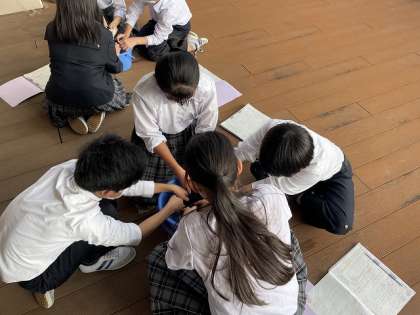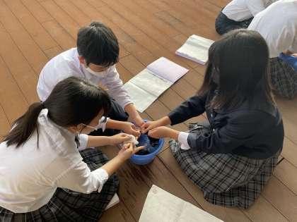洗剤液を作るところから始まり、友達とアドバイスし合いながら手洗いを行いました。