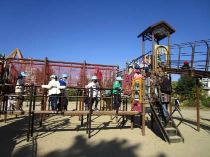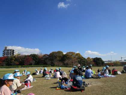 昼は班ごとに集まってお弁当を食べました。晴天の中、楽しく食べることができました。その後すざくゆめ広場に移動し、遊具で遊んだり秋を見つけたりしました。