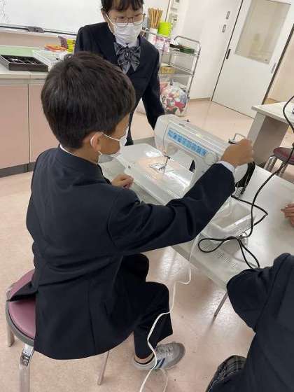 家庭科の学習でミシンを使ってトートバックをつくります。