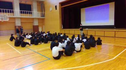 連休明けの本日、1限に7年生の学年集会が開かれました。