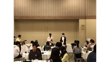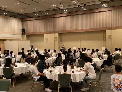 健康観察を終え、朝食をとっている様子です。9年生は、みんな元気にしています。退館式の後、長崎市内班別自主研修に向かいます。
