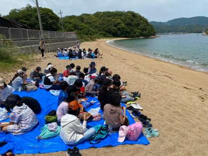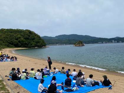 砂浜でのお弁当タイムは、波の音が心地よいです。