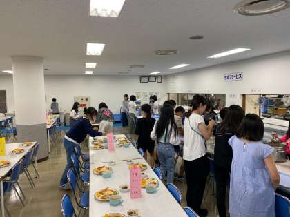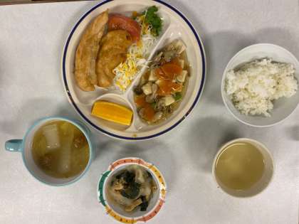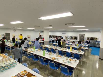 入浴を済ませて、これから夕食です。食事係が準備しています。