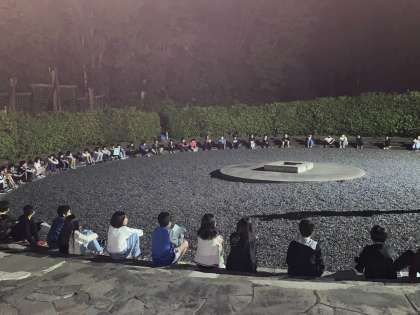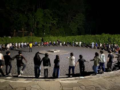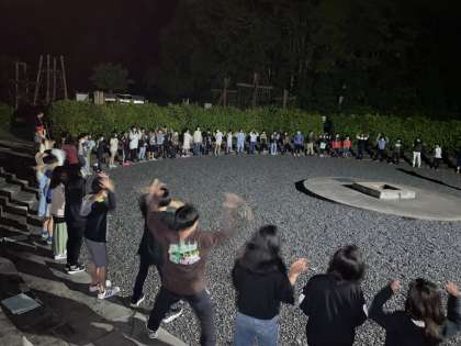 キャンプファイヤーの練習です。明日のキャンプファイヤーに向けて、歌やダンスを練習しました。