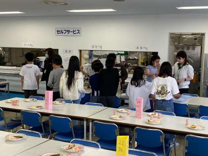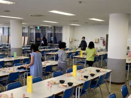 朝食の準備です。食事係がテキパキと準備をしています。昨晩の夕食準備の経験が生かされてています。