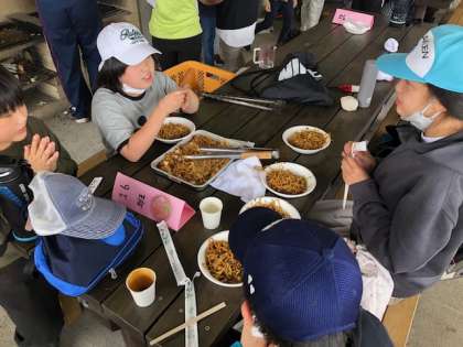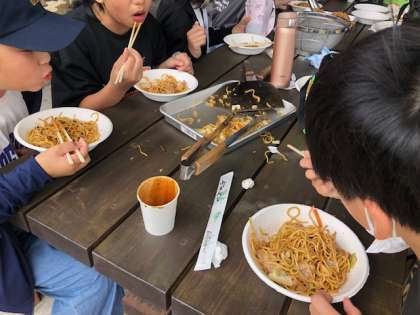 みんな大きな口を開けて、焼きそばを頬張っています。