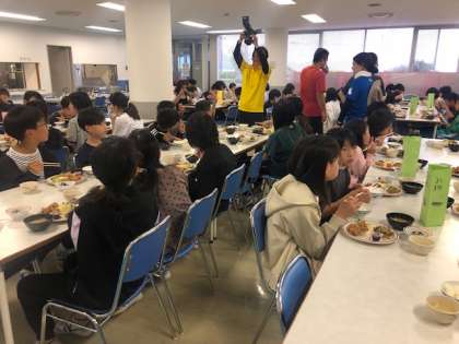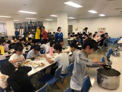 夕食の様子です。カッター活動にアスレティック。たくさん体を動かしたので、お腹はぺこぺこです。