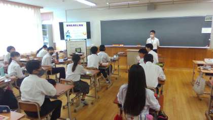 本日、9年生を対象に薬物乱用防止教室を行いました。南警察署からスクールサポーターの方にお越しいただき、薬物そのものの危険性や依存性の恐ろしさについて、講演していただきました。まず、薬物の入り口になるのがタバコであることや知り合いからの勧めで手を出してしまうことが多いことをお話ししていただきました。また、動画では、薬物による幻覚に悩まされている方やその支援を行っている方の実体験に基づく話があり、その恐ろしさについて、深く理解する機会となりました。