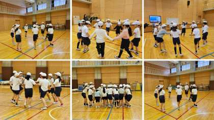 体育科「フォークダンス」では「マイムマイム」を踊りました。初めてのフォークダンスに最初は戸惑っていましたが、「みんなと踊ると楽しい!」「大きな円になって踊ると、みんなの笑顔が見えて、自分も笑顔になった!」「もっと踊りたい!」など、体も心もぽかぽかになり、ダンスを楽しむことができました。
