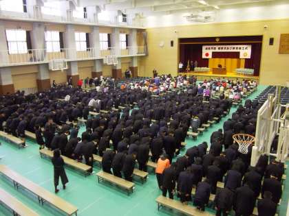 子どもたちも少し慣れてきた様子で,1回目に比べて動きもスムーズです。開校式の流れを確認したのですが,司会の「起立,礼」といった合図にもみんなきびきびと動けていてよく揃っていました。その一体感のある様子は,今後の凌風学園生としての生活にも生きてくることでしょう。