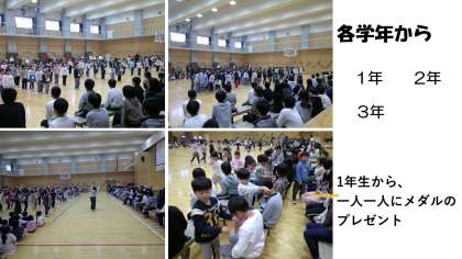 1年生からメダルのプレゼントをかけてもらい、最後にお礼の発表を行った4年生たち。うれしい気持ちと少し寂しい気持ちが入り混じりながら、大きな拍手を背に堂々と退場をしていきました。