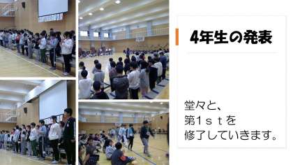 今日は第1st「4年生ありがとうの会」でした。これまで第1stをリーダーとして引っ張ってきた4年生。4月からは第2stという新たなステージに進級する4年生。そんな彼らに、感謝とエールの気持ちを込めて、各学年趣向を凝らして発表をしました。