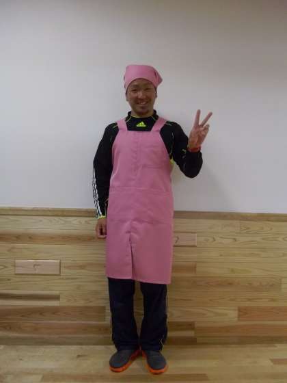 でも,担任もエプロン姿で張り切っています!