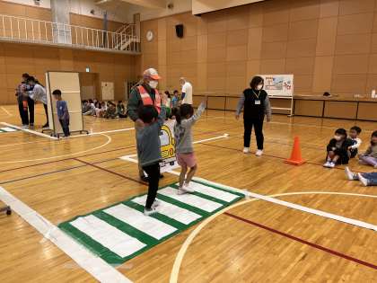1年生は、交通安全教室を行いました。はじめに、南警察署の方から交通安全についてお話を聞きました。車が通るときや登下校の際に気をつけることを考えました。そして、道を歩くときに右と左を見ることや横断歩道の渡り方を実際に歩いて確認しました。