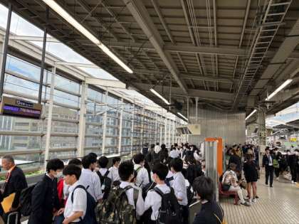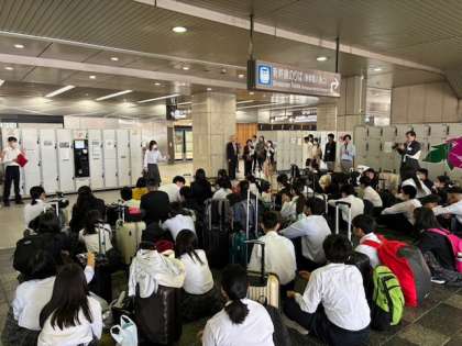 修学旅行出発の日にふさわしい素敵な天気です。9年生は修学旅行長崎・福岡方面に向け出発です。素敵な出会い・発見をしてきてください。