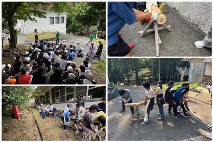 プログラムの最後はみんなで「丸太切り」にチャレンジしました。